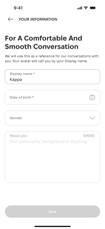 It’s natural to hold on to what feels familiar and comfortable especially in relationships. With that in mind, we’re giving you the option to add a few details about yourself in the “About You” field, so your avatar can chat with you like a long-time acquaintance, not a stranger starting from zero.