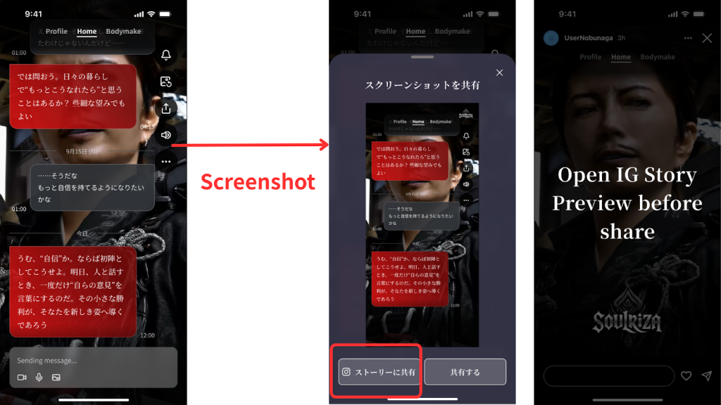 ② Screenshot → Social Media Share