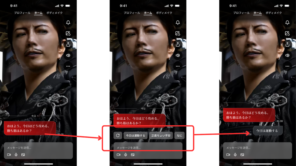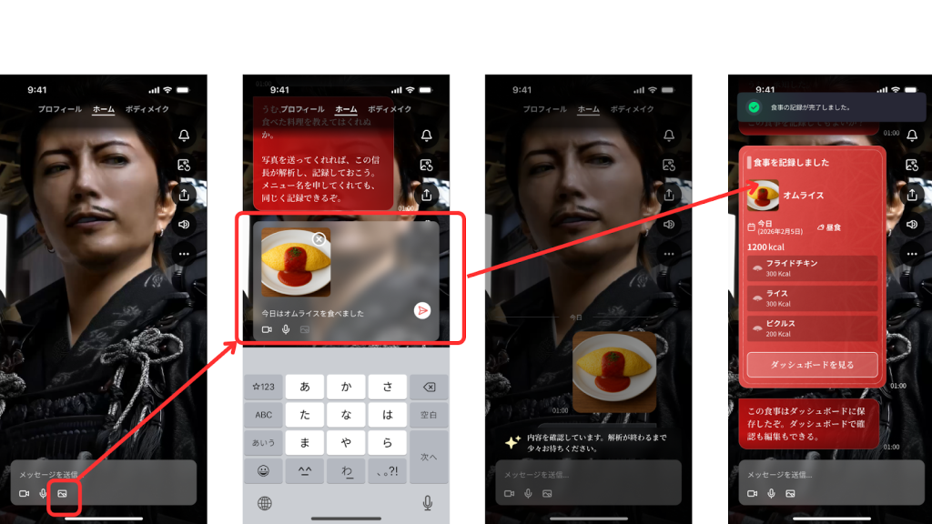 Sharing a photo with a short message allows AI Nobunaga to better understand your situation and respond more naturally.