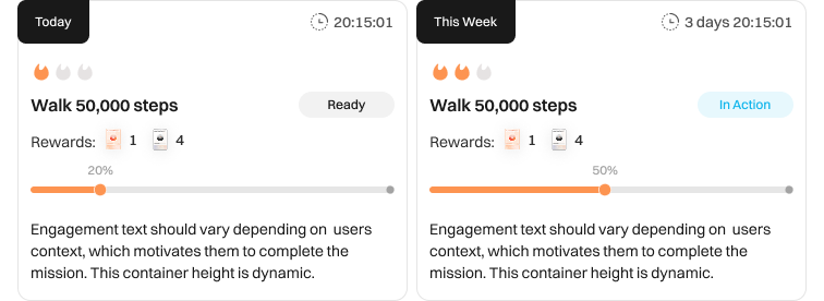 - Weekly missions support longer-term progress and help you stay motivated over time