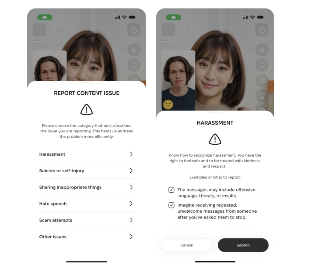 With our latest update Version 3.12.0, you can now report inappropriate avatar content during calls or chats. Whether it’s hate speech, harassment, scams, or anything unsafe, just flag it — and our team will take care of the rest.